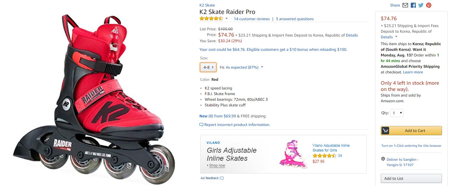 [해외직구] 아마존 무료배송 추천품목 – K2 인라인스케이트 직구