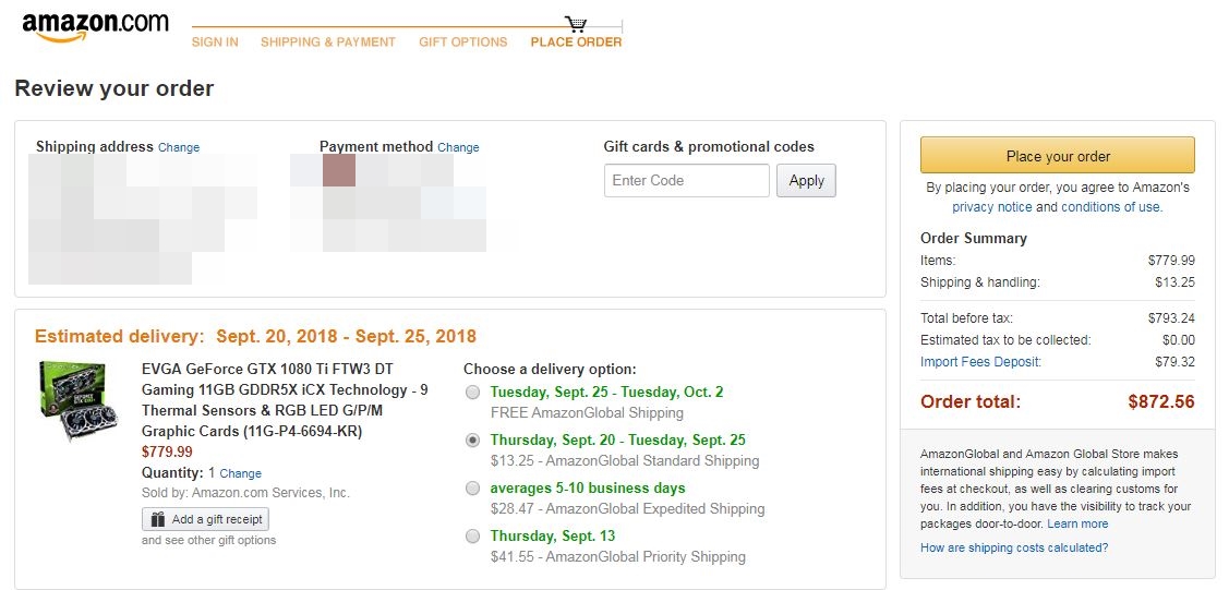 [해외직구] 아마존 그래픽카드 직구, 한국까지 무료배송되는 EVGA GeForce GTX 1080 Ti