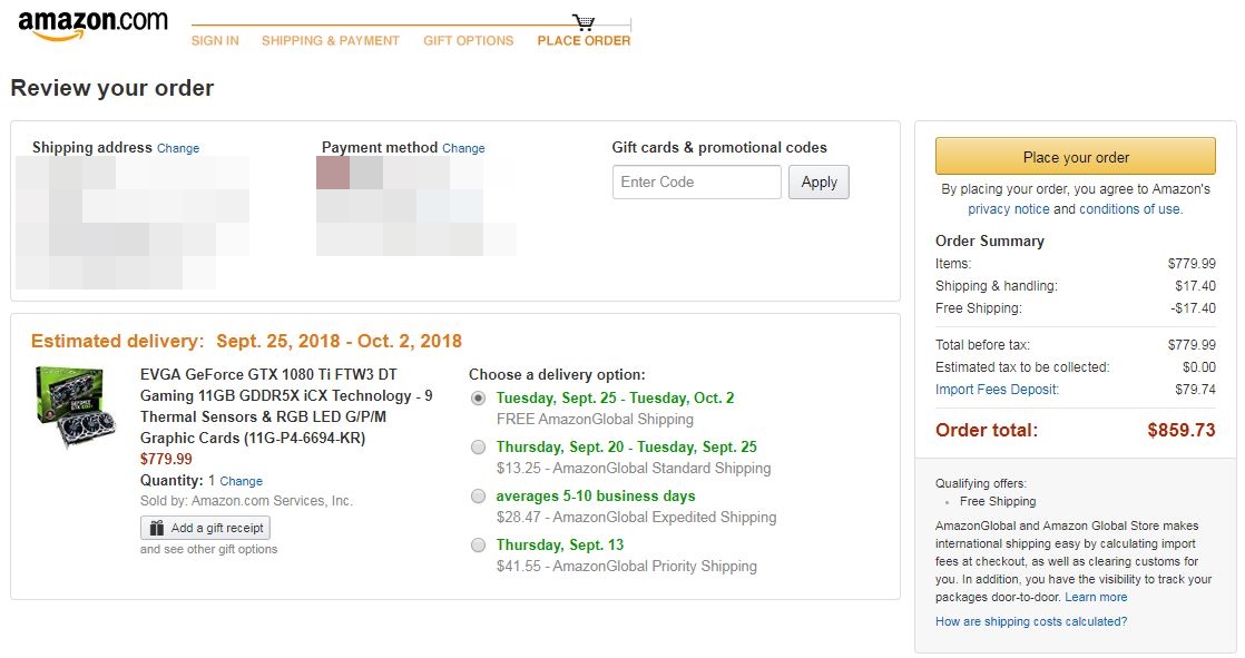 [해외직구] 아마존 그래픽카드 직구, 한국까지 무료배송되는 EVGA GeForce GTX 1080 Ti