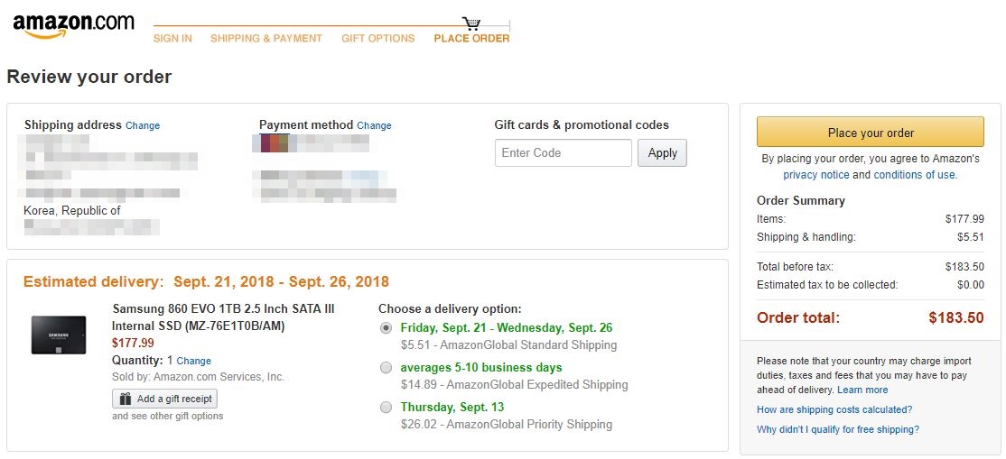 [해외직구] 삼성 EVO 860 1TB, 아마존 SSD 직구로 10만원 절약하기