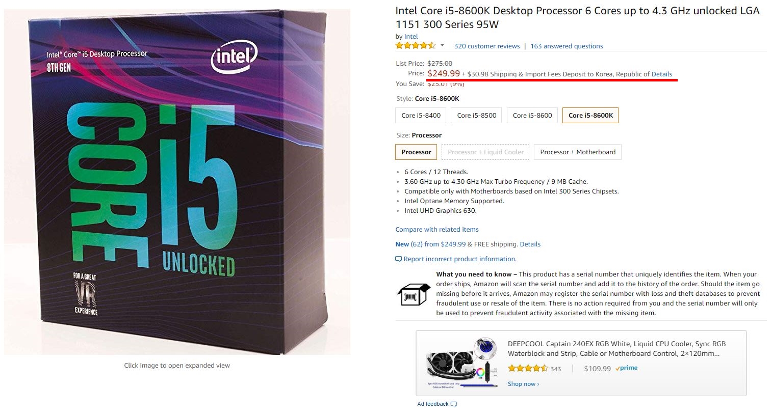 [해외직구] CPU직구, 아마존에서 i5 8600K 직구하기