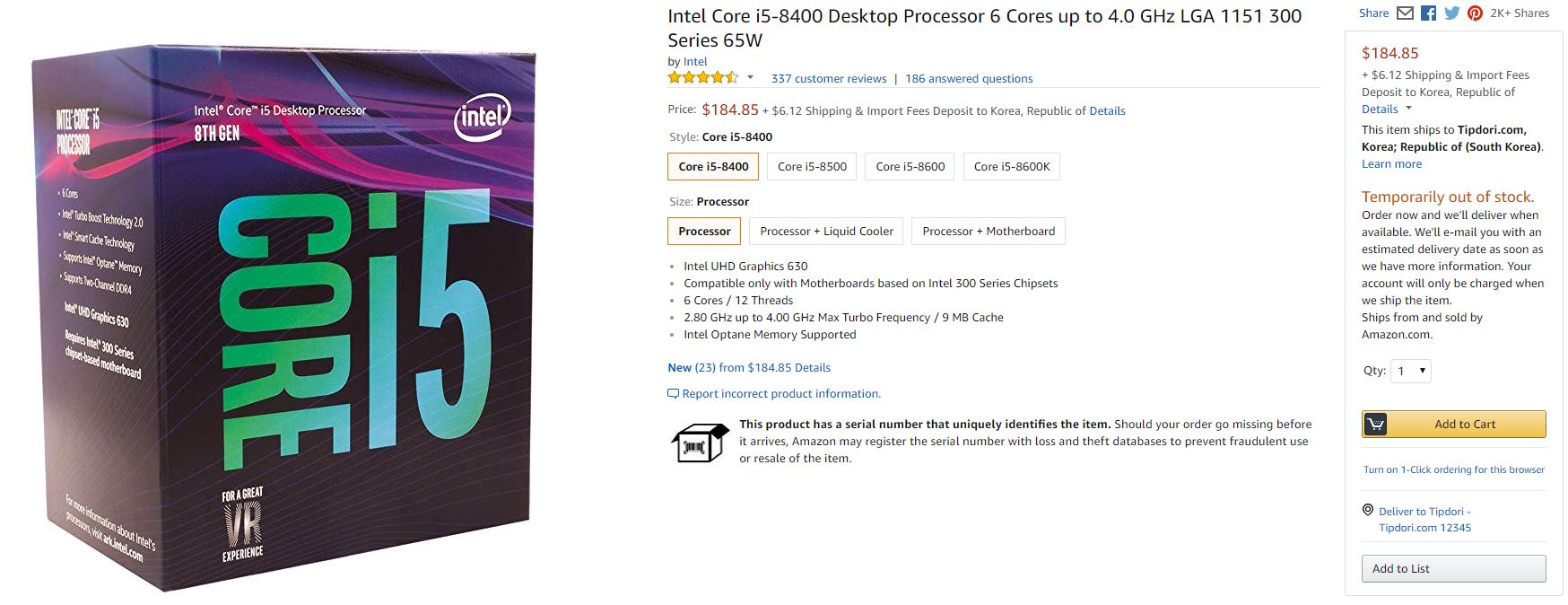 [해외직구] 인텔 i5 8400 아마존 직구 가격 및 방법