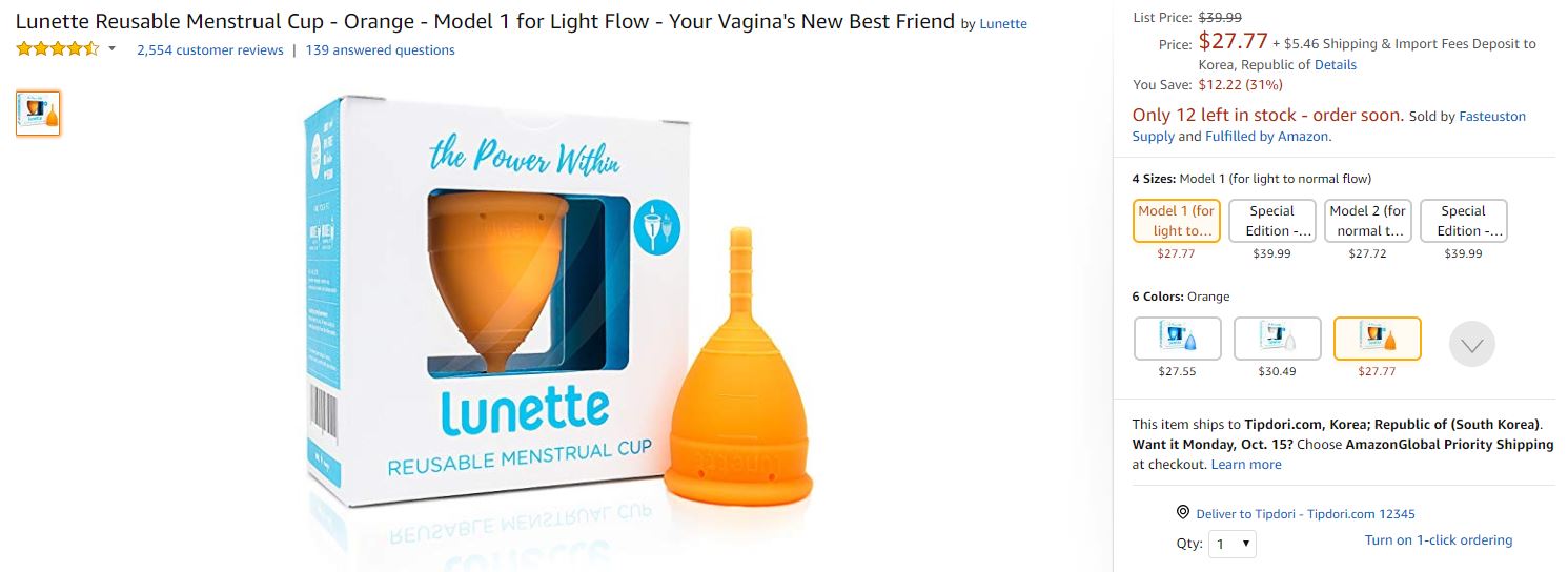 [해외직구] 생리컵 구매 사이트, 아마존 생리컵 직구 – 루네테 생리컵