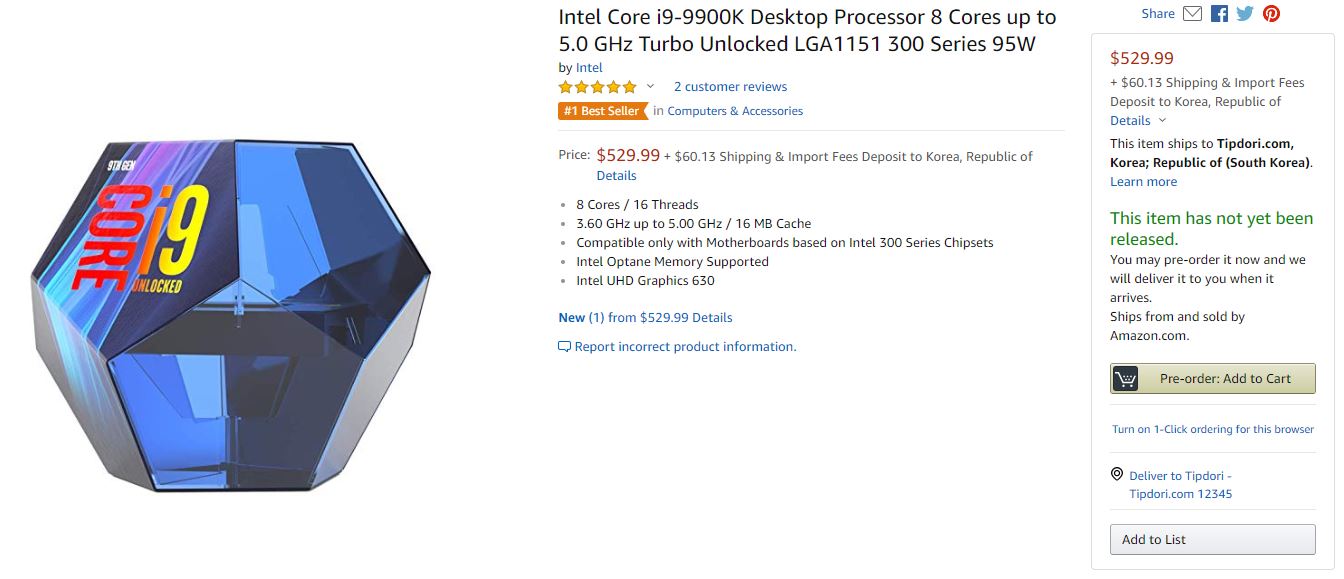 [해외직구] 인텔 i9-9900K 아마존 직구 판매 시작~!