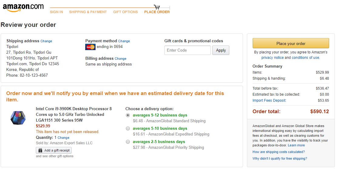 [해외직구] 인텔 i9-9900K 아마존 직구 판매 시작~!