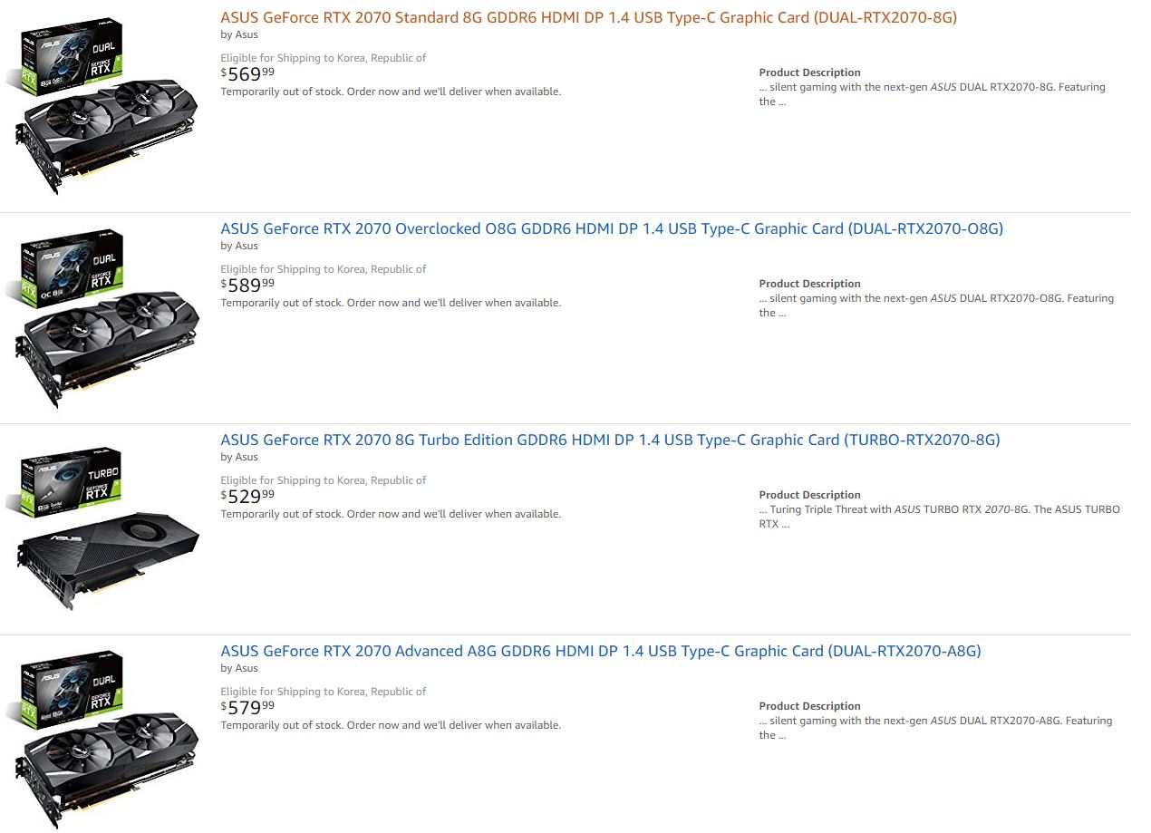아마존 그래픽카드 직구 – 아수스(ASUS) RTX 2070 좌표 및 모델비교