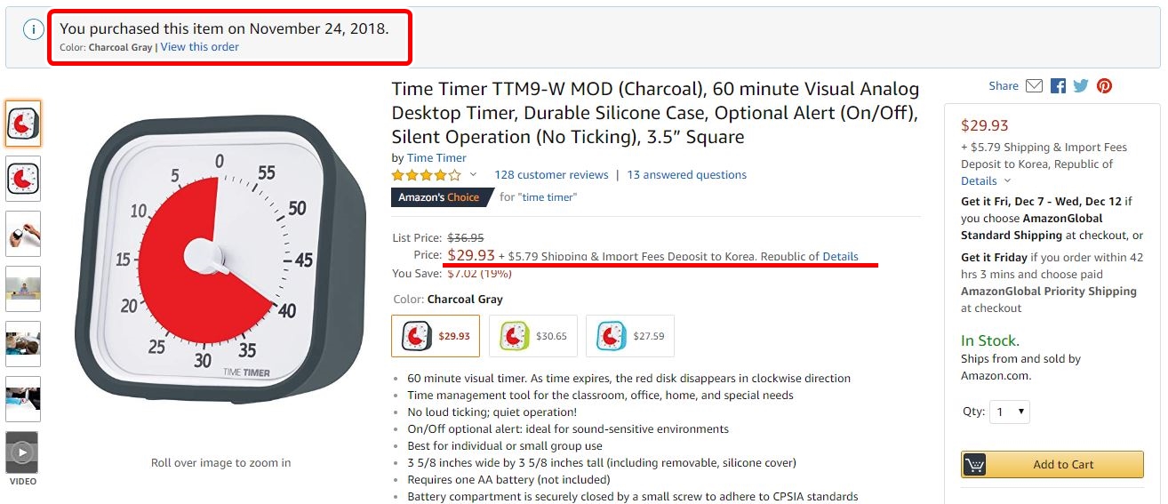 구글에서도 사용하는 엄마시계 타임타이머, 아마존 직배송 주문방법